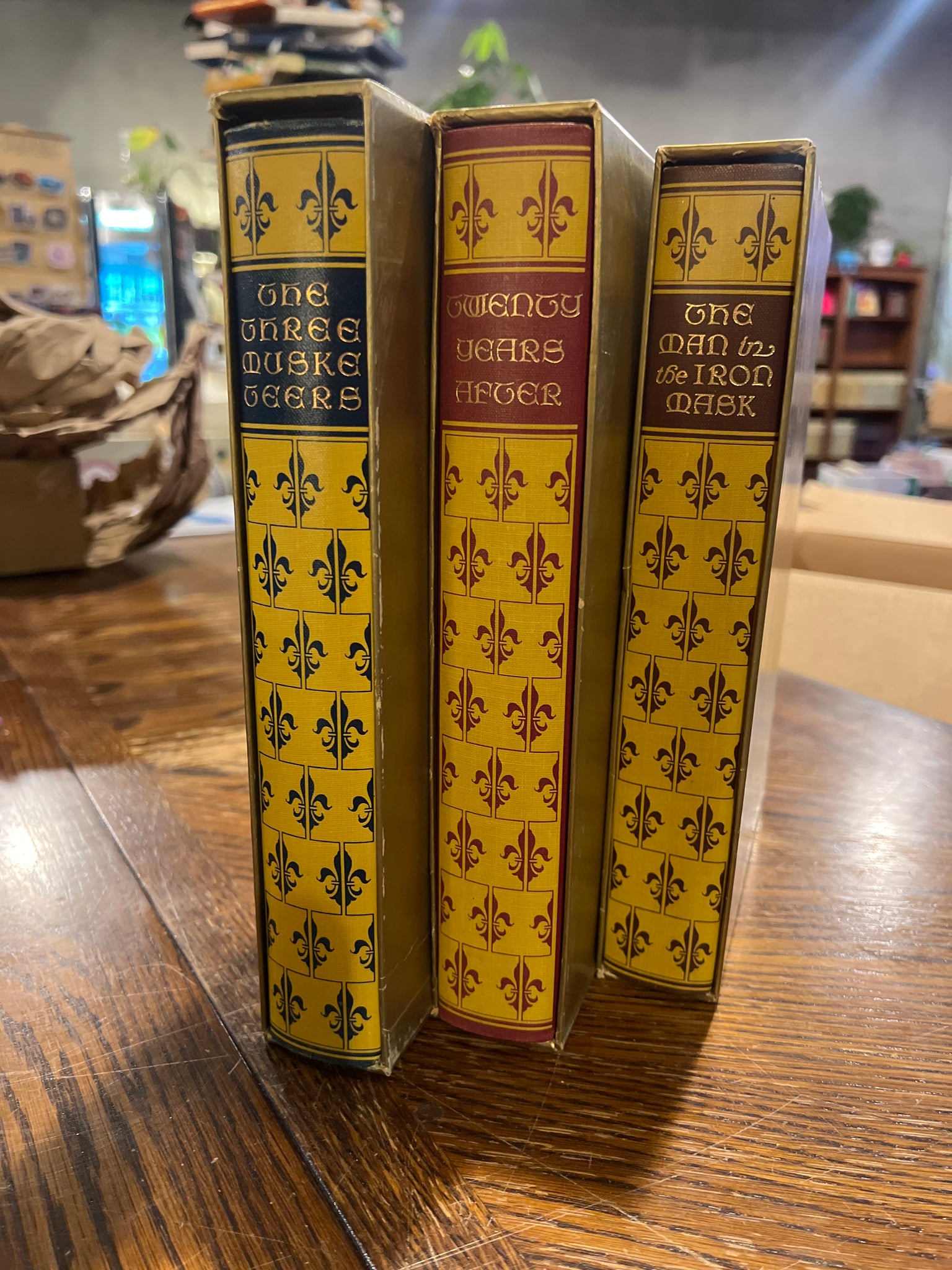 Copyright 1953, this three-volume set by Alexandre Dumas, is a Heritage press edition. Three hardcovers including slipcases.