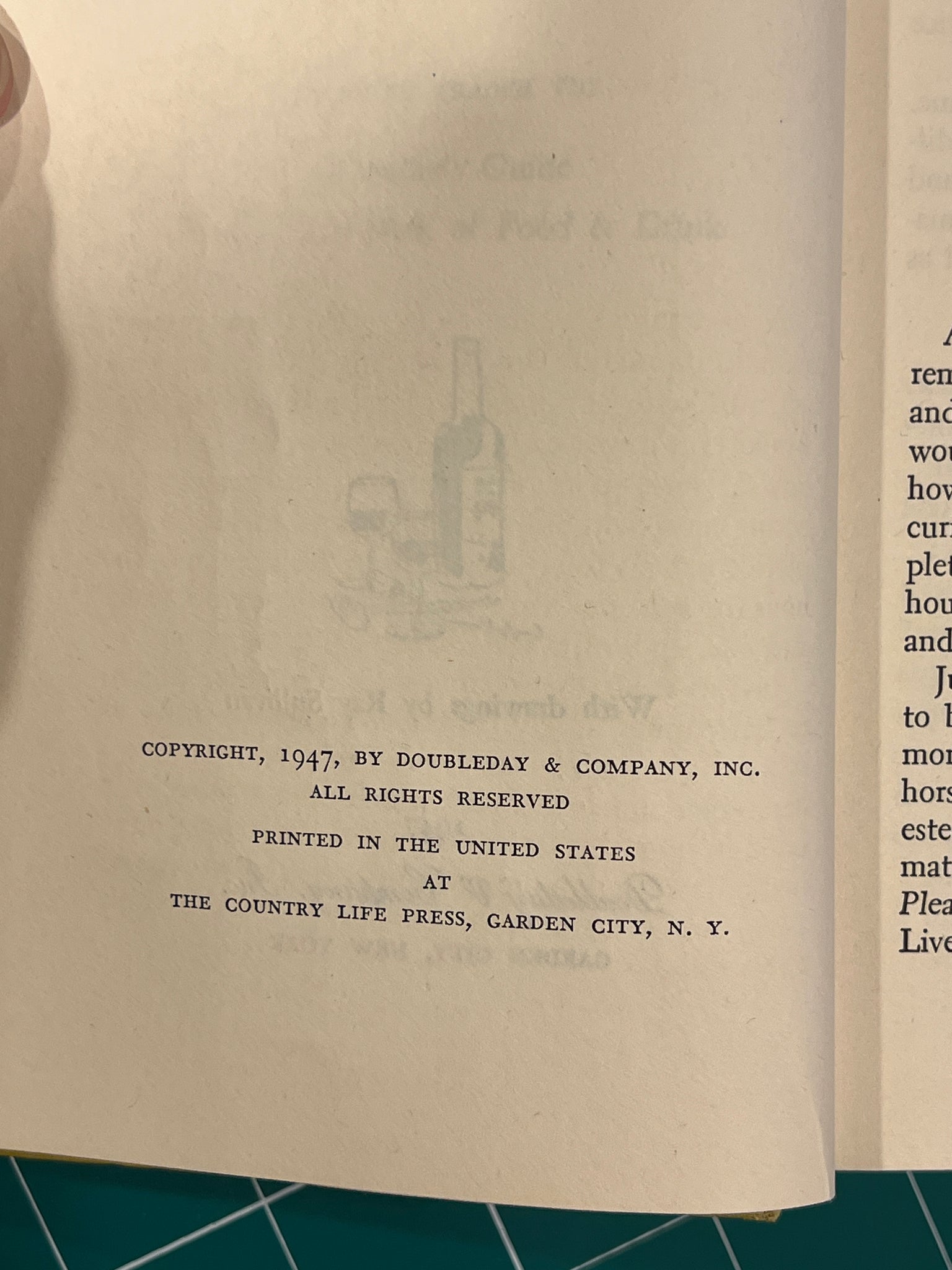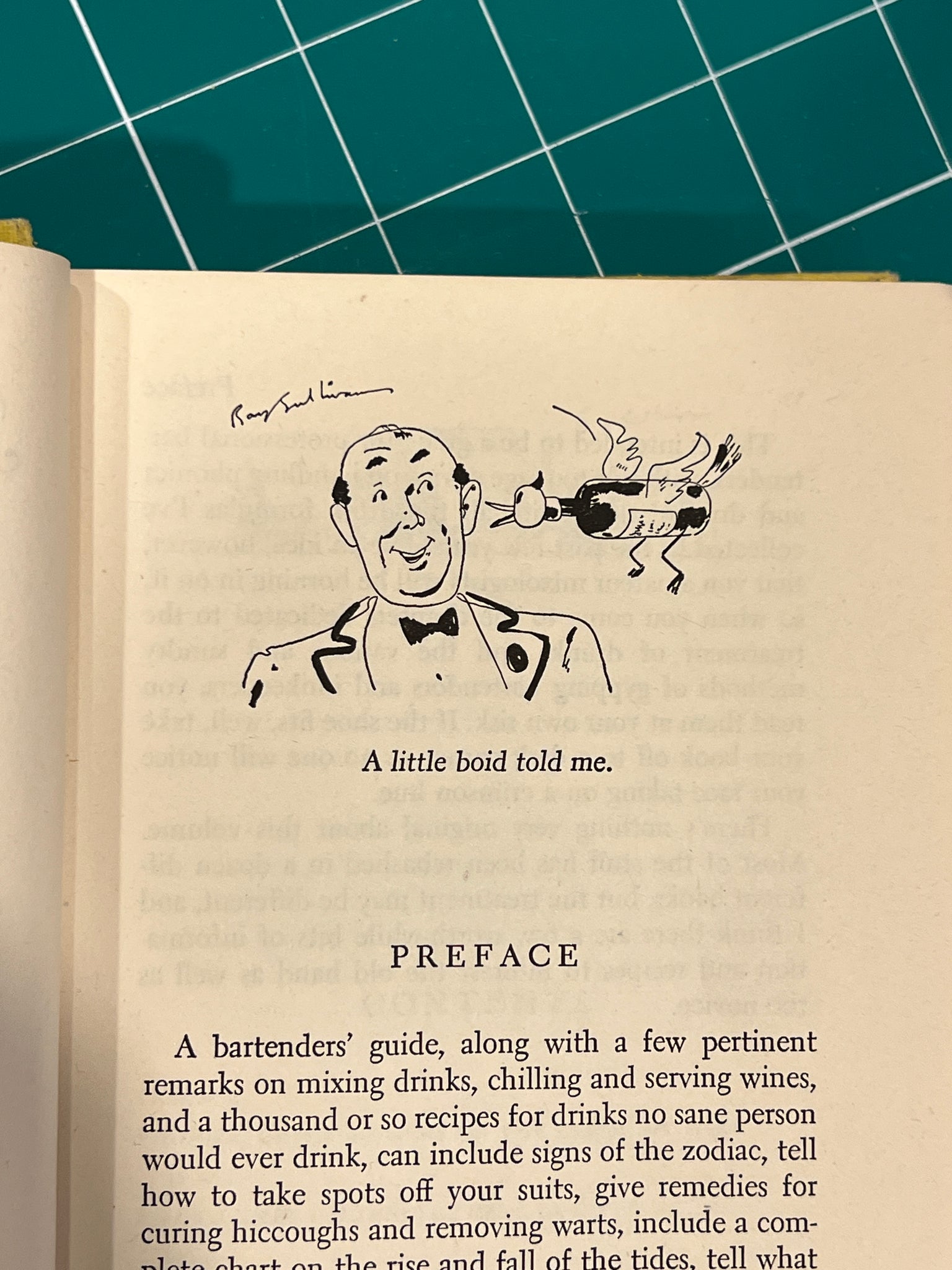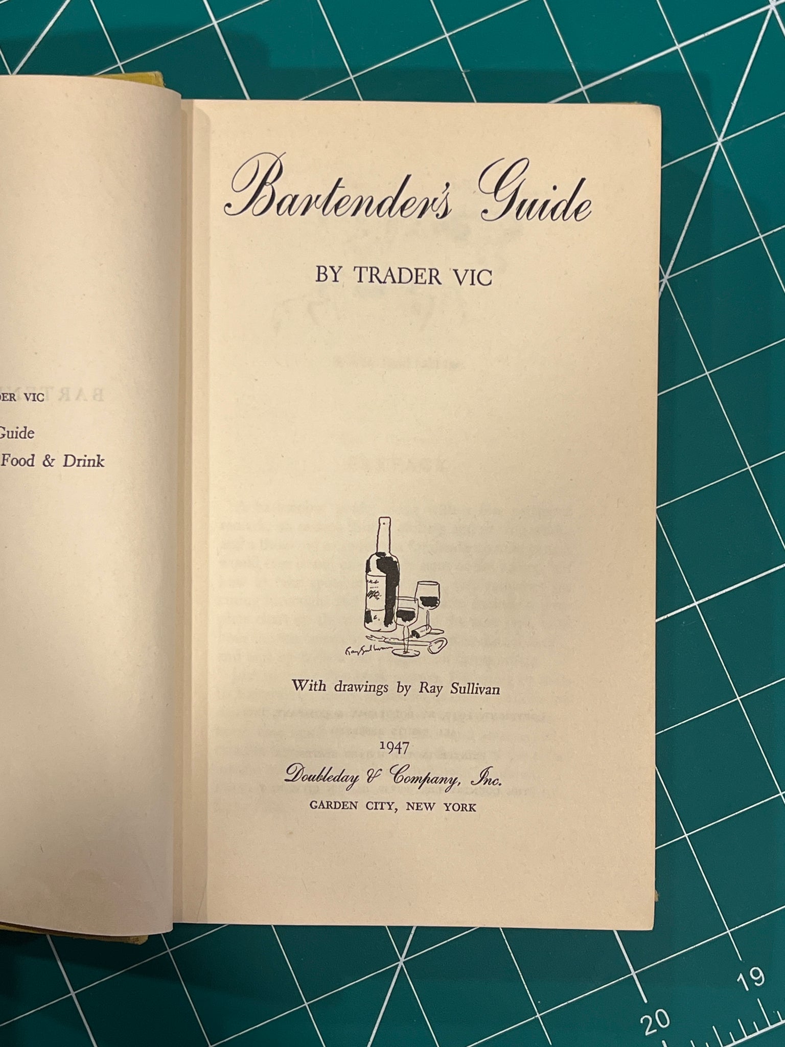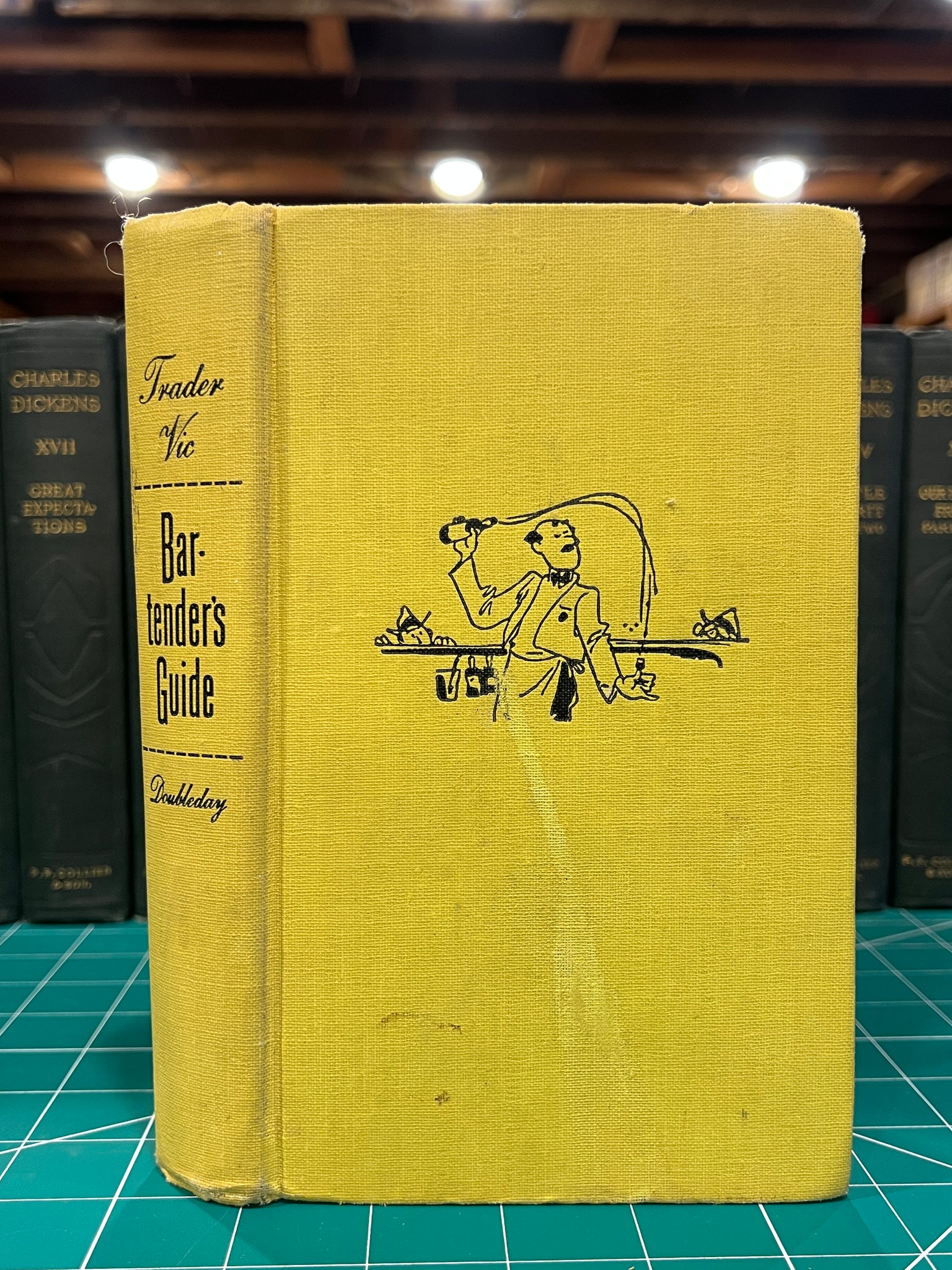 New York: Doubleday & Company, INC. 1947, 7.5 x 4.5 hardcover yellow cloth. With an illustration of a bartender on the front cover. In good condition, has outer staining, and damaged corners.