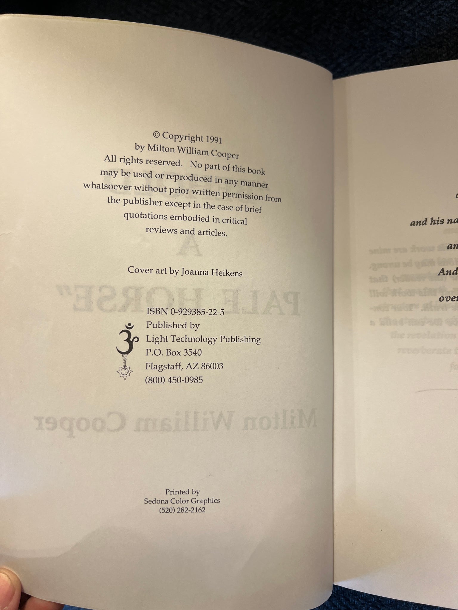 Title: Behold A Pale Horse Author: William Cooper Copyright: 1991 Publisher: Light Technology Publishing