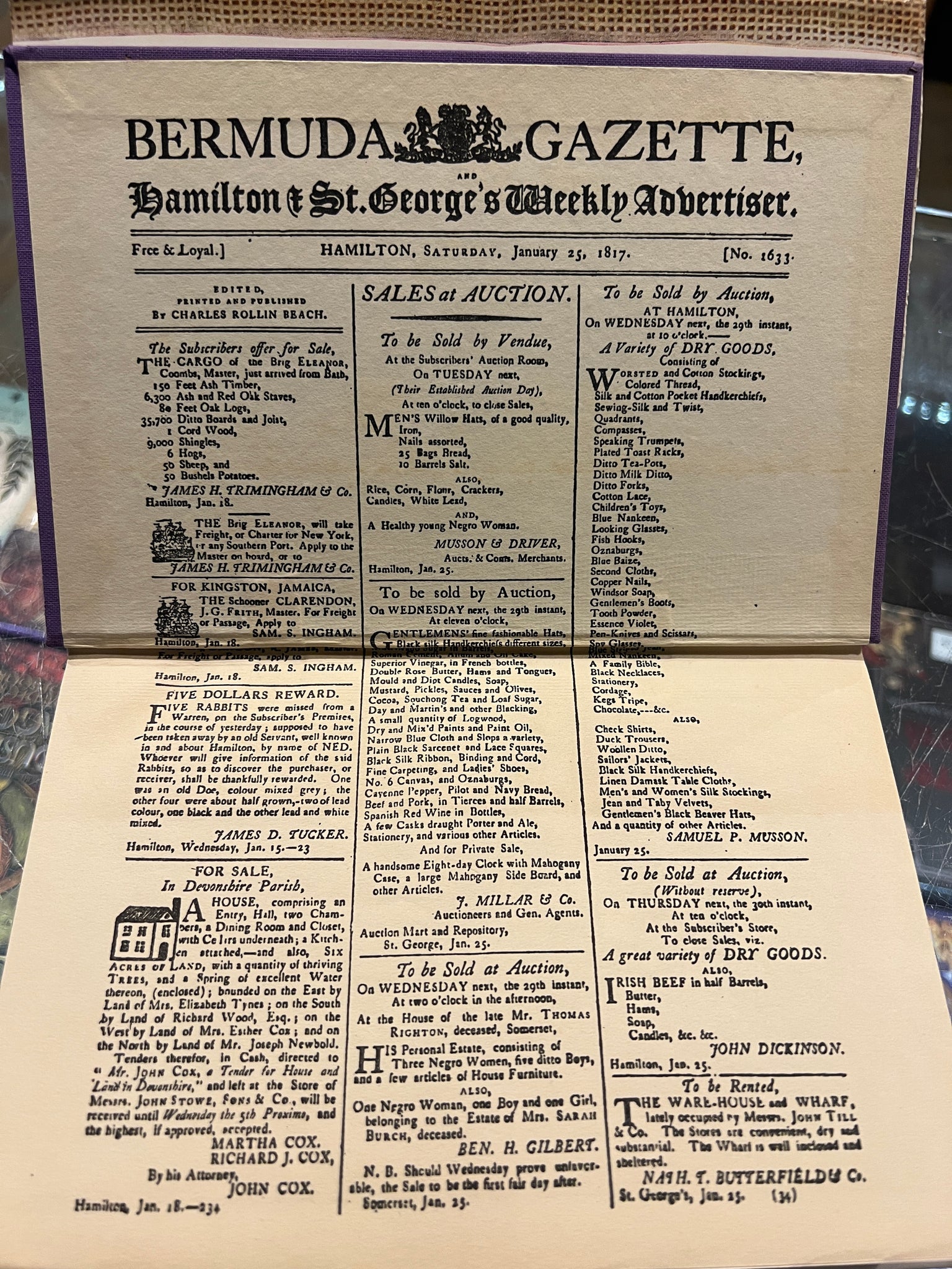 A first Edition of a book containing information from Bermuda newspapers, books, and private works by the author.