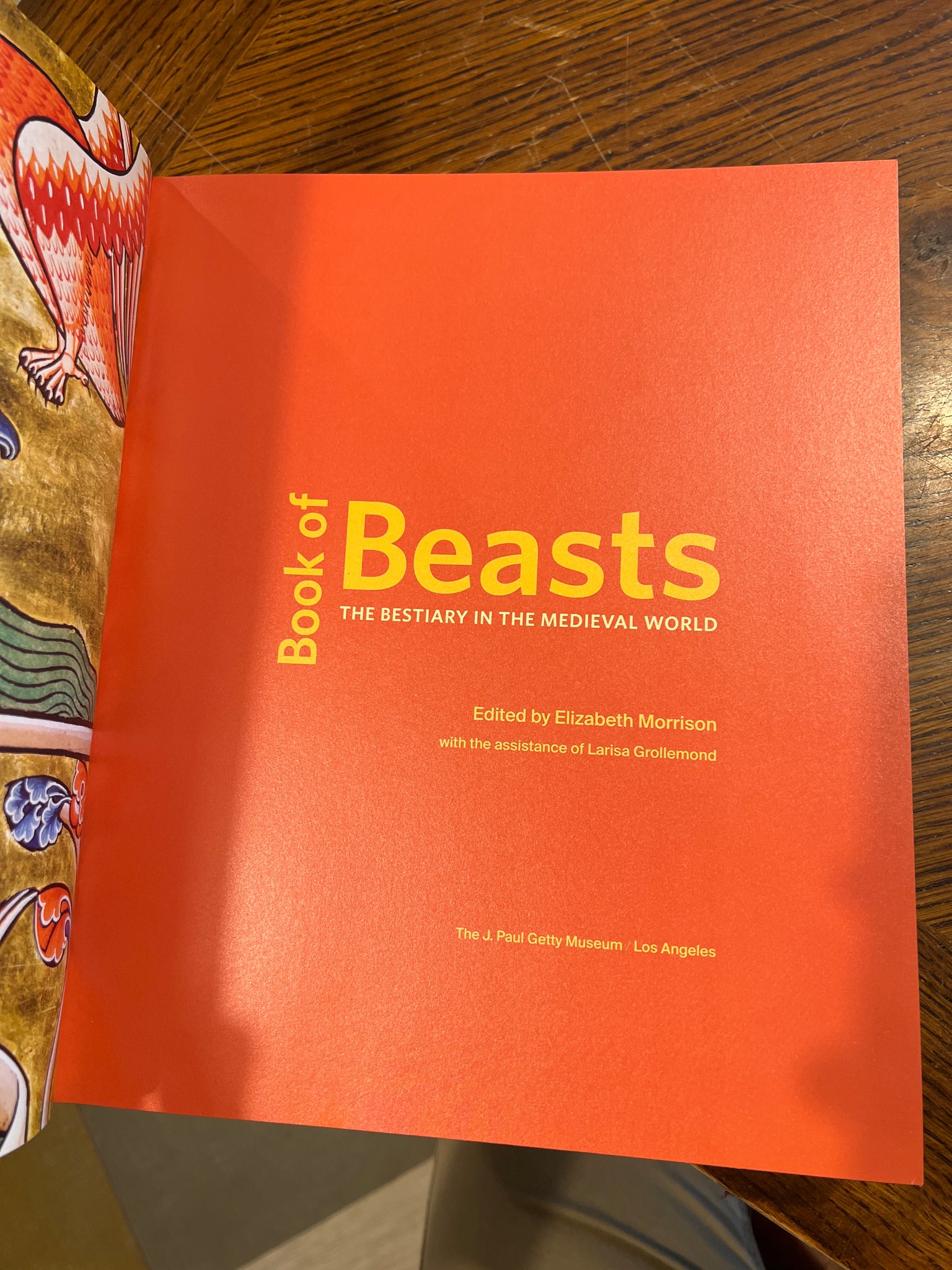 Title: Book of BEasts: The Besitary in the Medieval World Author: Elizabeth Morrison Publisher: The J. Paul Getty Museum/ Los Angeles