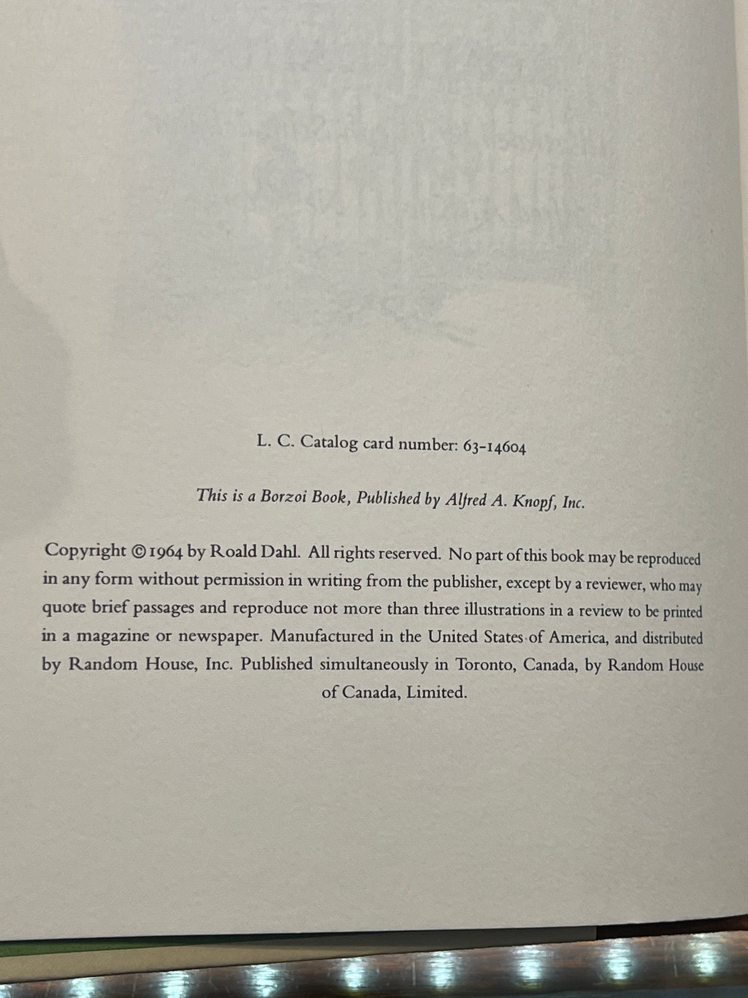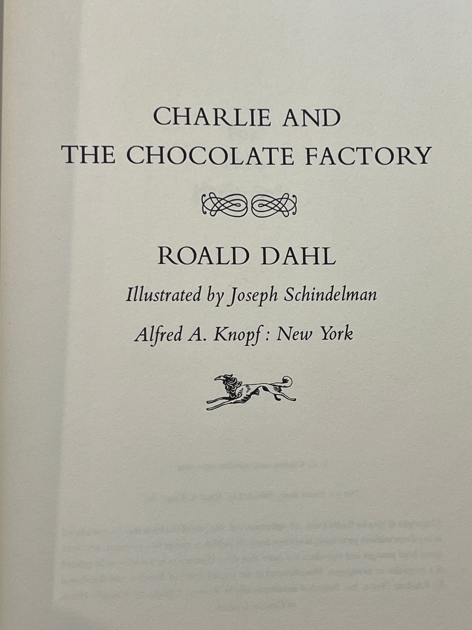 Title: Charlie And The Chocolate Factory Author: Roald Dahl Copyright: 1964 Publisher: Alfred A. Knopf