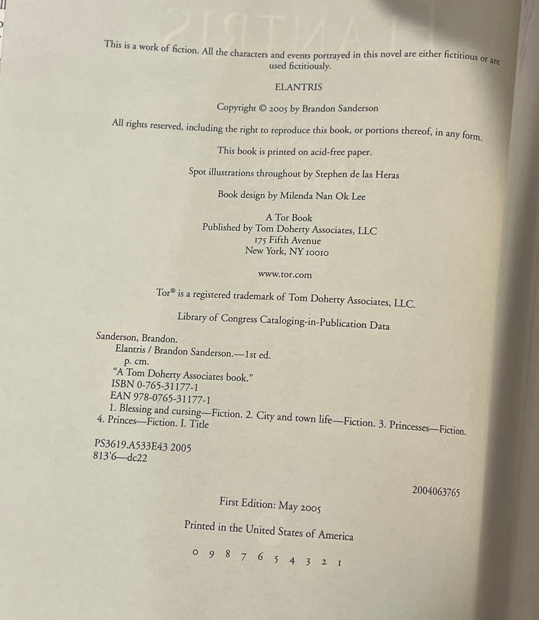 Elantris is Brandon Sanderson's very first published book from 2005. He would quickly go on to receive much attention for his Mistborn series just the following year. But Elantris will forever hold the spot of Sanderson's official start.