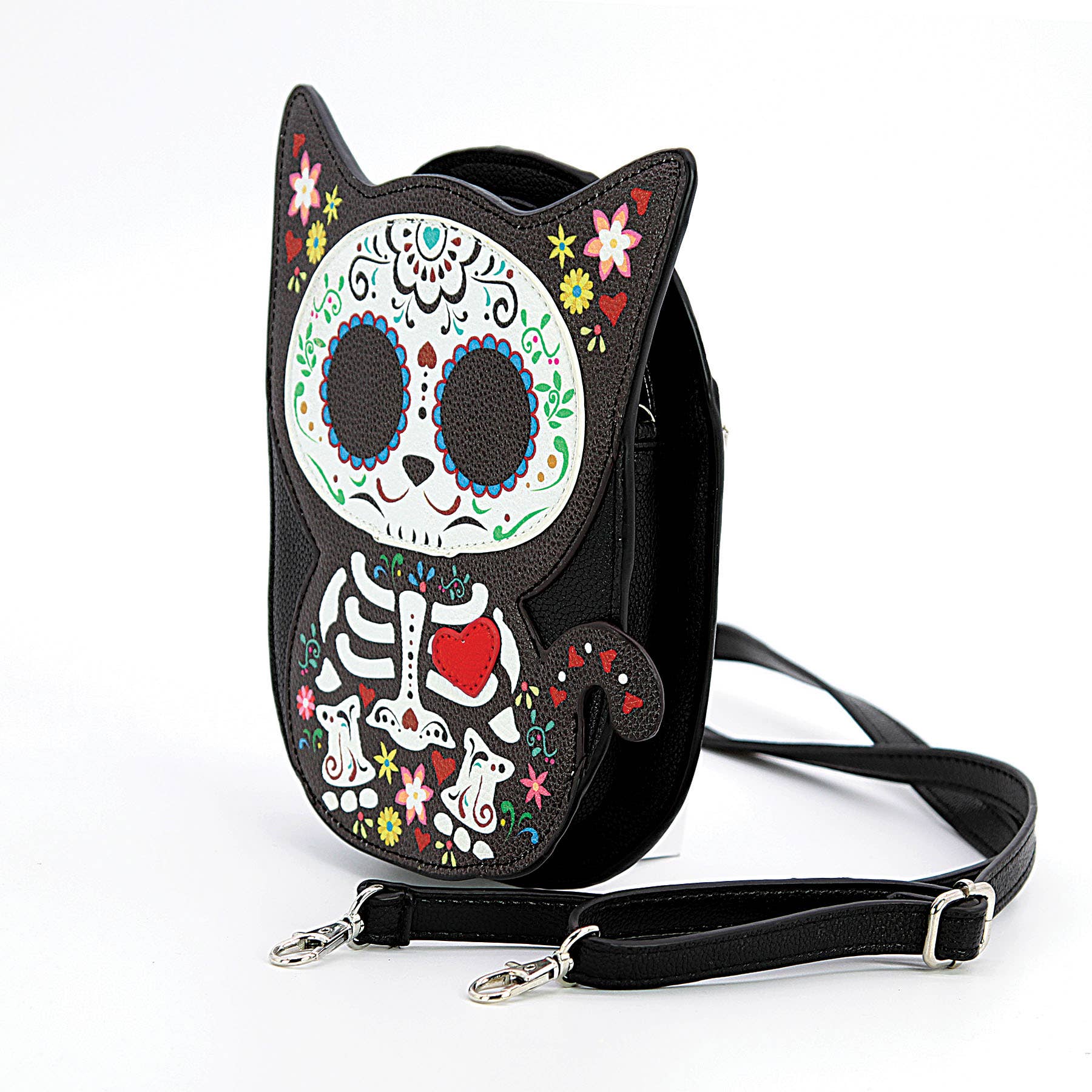 Embrace a fusion of vibrant charm and playful mystique with our Floral Sugar Skull Cat Crossbody Bag. Crafted with meticulous attention to detail, this bag features a whimsical design that seamlessly blends elements of traditional Mexican sugar skulls with a delightful feline twist.