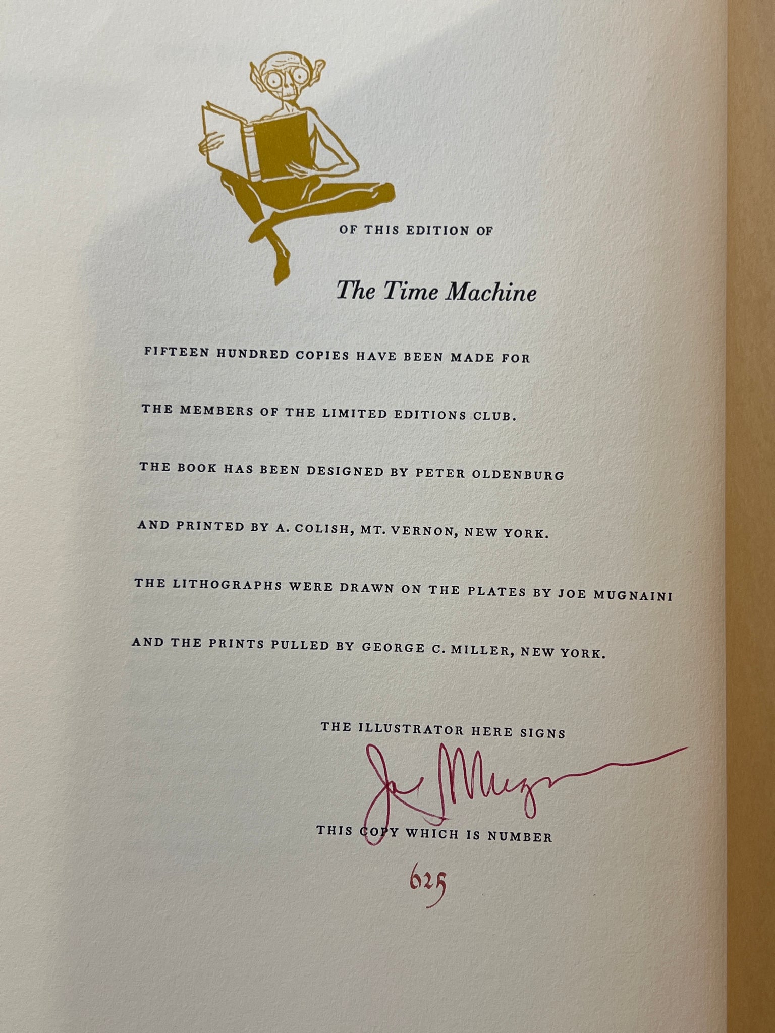 New York: The Limited Editions Club, 1964, 10” x 7”.[6] 97 [1] Signed and numbered copy by illustrator, of which this is #625/1,500. Signed on the back page of each edition. Illustrated by Joe Mugnaini. Shows some general wear but overall, in very good condition.