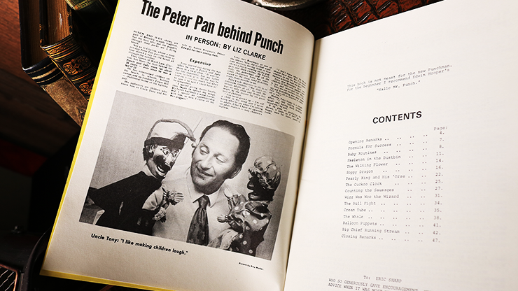 This book contains routines and tips for the Punch & Judy puppeteer. Tony Green was a professional Punch and Judy man and made puppets for the Supreme Magic Co. Ltd, Bideford, Devon, England. He was Supreme Magic's second Punch maker, following Joe Parsonage.
