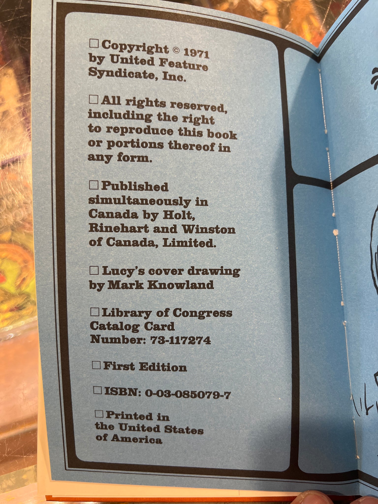 Title: SNOOPY and "It Was a Dark and Stormy Night" Author: Charles M. Schulz Copyright: 1971 Publisher: Holt, Rinehart and Winston