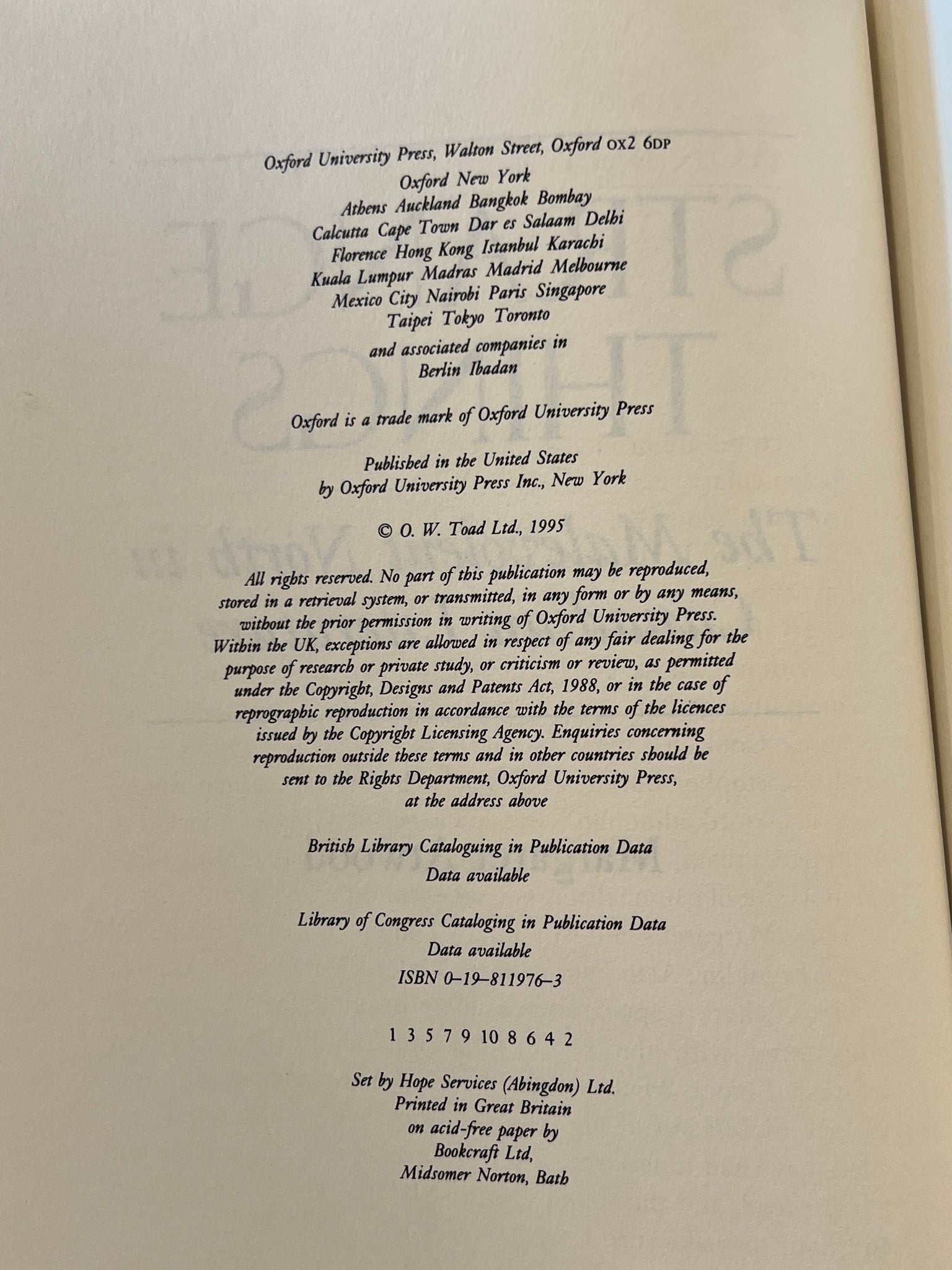 New York: Oxford University Press. First edition, first printing, 1995. Hardcover with dust jacket. In good condition, dust jacket has a ripped corner, and staining.